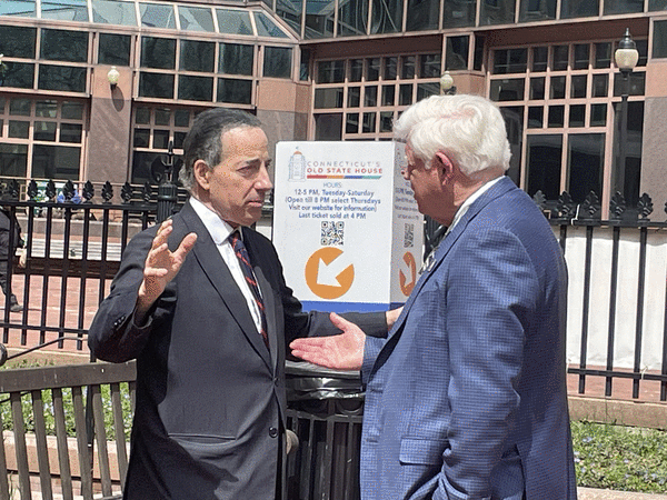 “Jamie Raskin is sort of the perfect example of why it’s so important to get new energy and new voices in our Democratic caucus down there,” Bronin said outside of his Hartford home overlooking Bushnell Park. “Congressman Raskin is somebody who in his fifth year in Congress managed the impeachment of Donald Trump, who challenged a 30-year Democratic incumbent to lead the judiciary committee and who was one of the first Democrats to have the courage to say that President Biden should step aside in a moment that every minute mattered.”